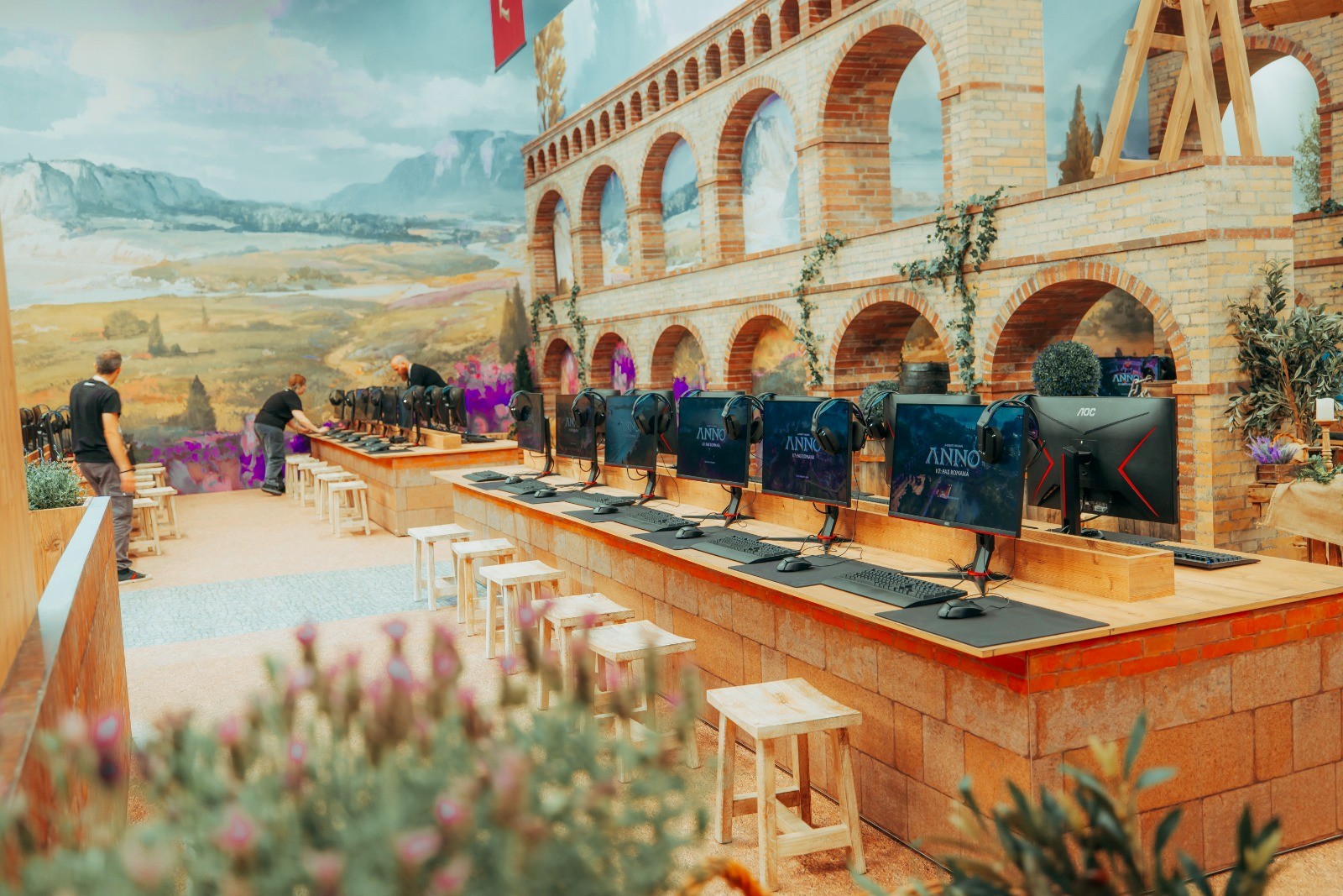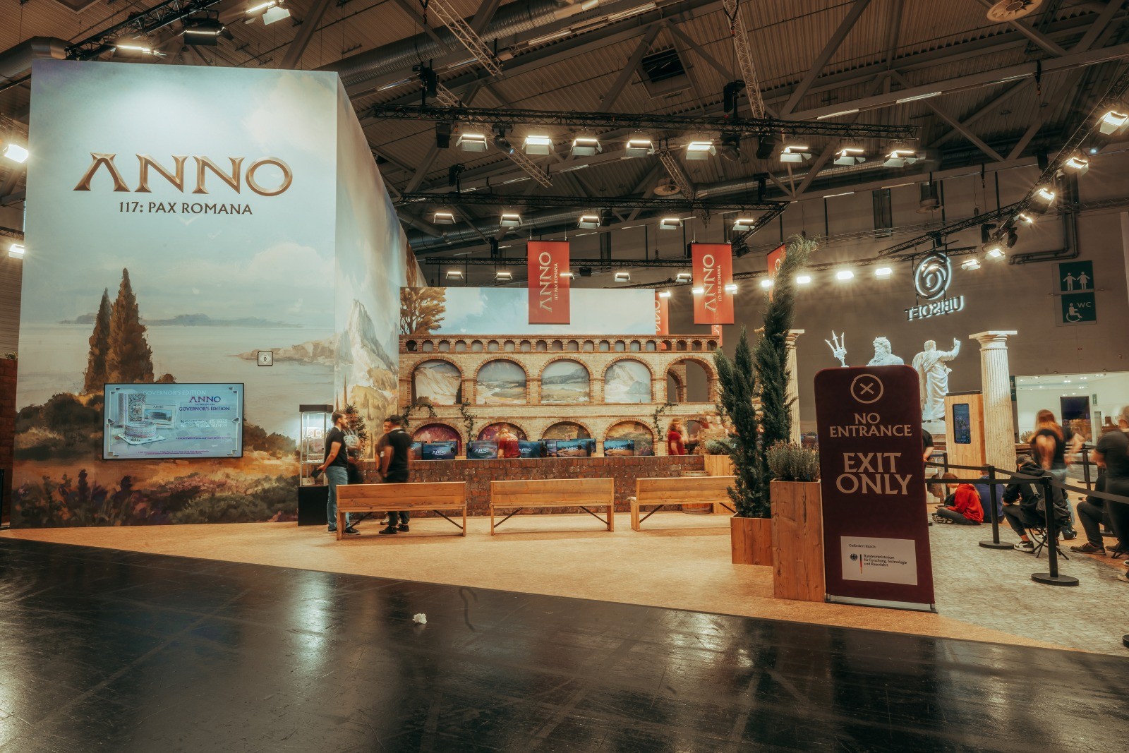 Das beeindruckende Areal mit 72 Anspielstationen fängt die Atmosphäre des Spiels authentisch ein: Echte Texturen aus Anno 117: Pax Romana prägen das Standdesign, gigantische Götterstatuen und römische Architektur laden zum Entdecken und Fotografieren ein. Düfte und Klangwelten aus der Antike machen den Besuch zu einem emotionalen Erlebnis. Walking Acts in römischer Gewandung und Mitglieder des Entwicklerteams aus Mainz begleiten die Gäste beim Spielen und schaffen Nähe zur Marke.