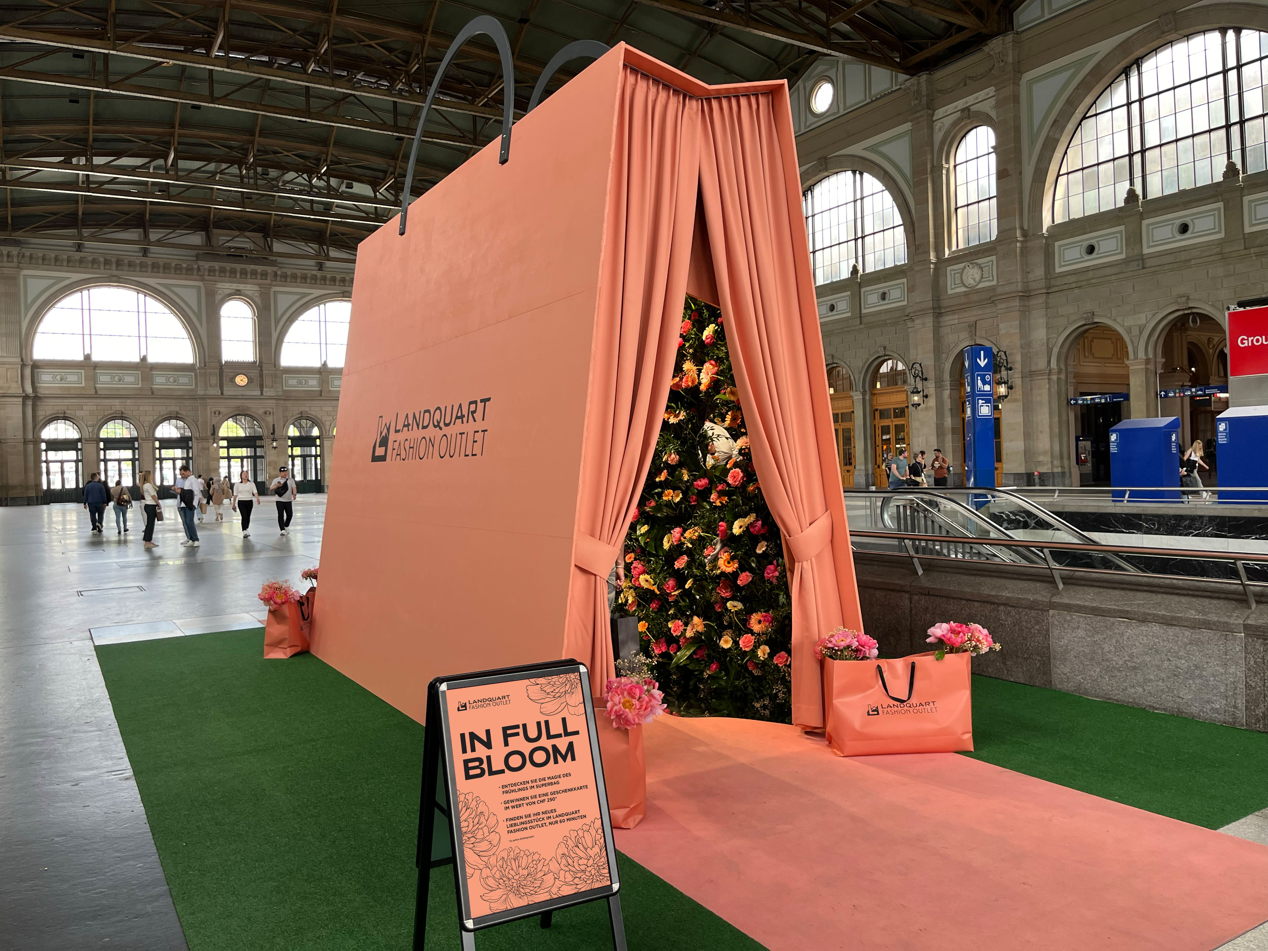 Nachhaltigkeit war ein zentrales Thema: Flyer aus Recyclingpapier mit eingebetteten Samen luden Kund:innen dazu ein, ihre eigenen Blumen zu pflanzen. Dies unterstrich das langfristige Ziel „Mit dem Zug nach LFO“ – für einen umweltbewussten Konsum.