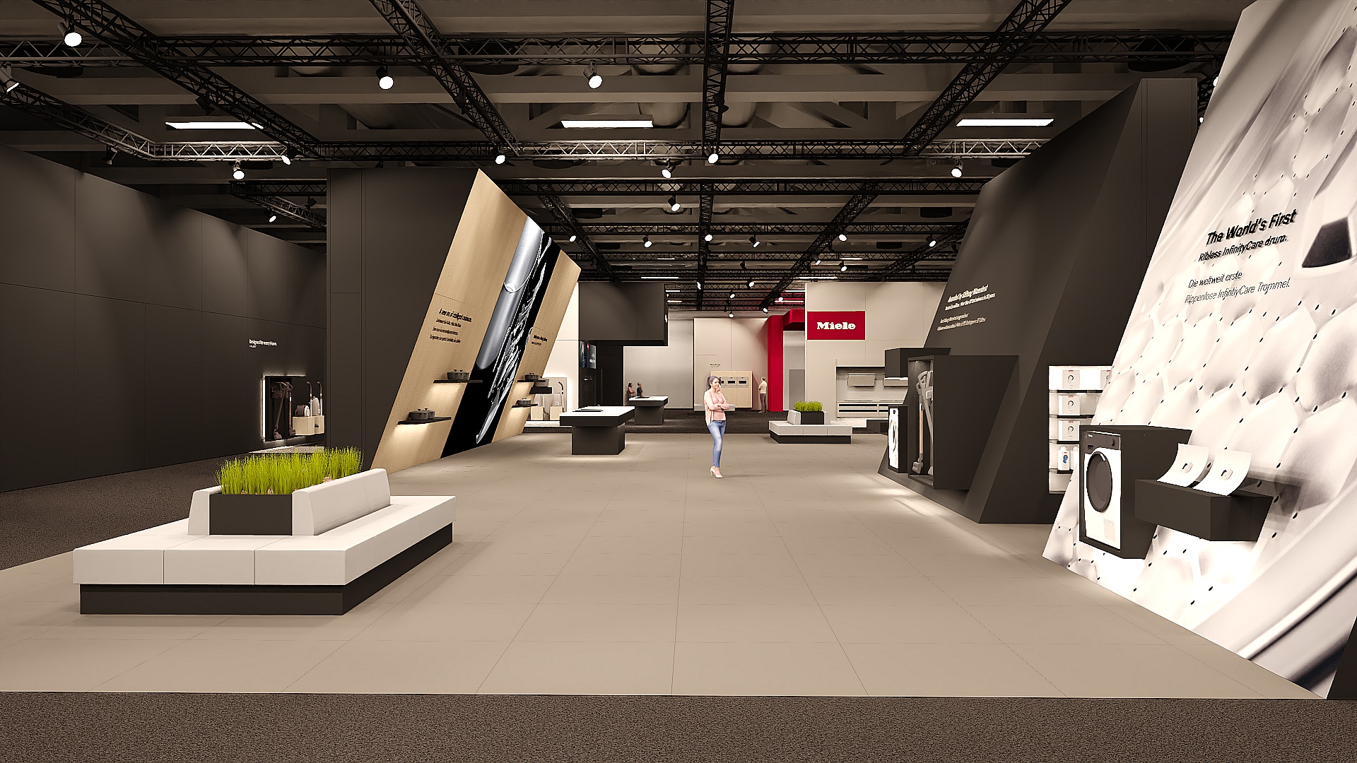 Mit dem „Globalen Nachhaltigen Premiumkonzept“ setzt Miele auf der IFA 2025 neue Maßstäbe. Auf 2.650 m² entstand ein innovativer, visionärer Messeauftritt, der höchste Designqualität, Premium-Innovationen und kompromisslose Nachhaltigkeit vereint. 100 % wiederverwendbare Materialien, effiziente Leichtbauweise und ein reduziertes, fokussiertes und hochwertiges Design, schaffen eine immersive Markenwelt, die Innovation, Verantwortung und Premiumqualität erlebbar macht - ein Benchmark für zukünftige und zukunftsorientierte Miele Messeauftritte.